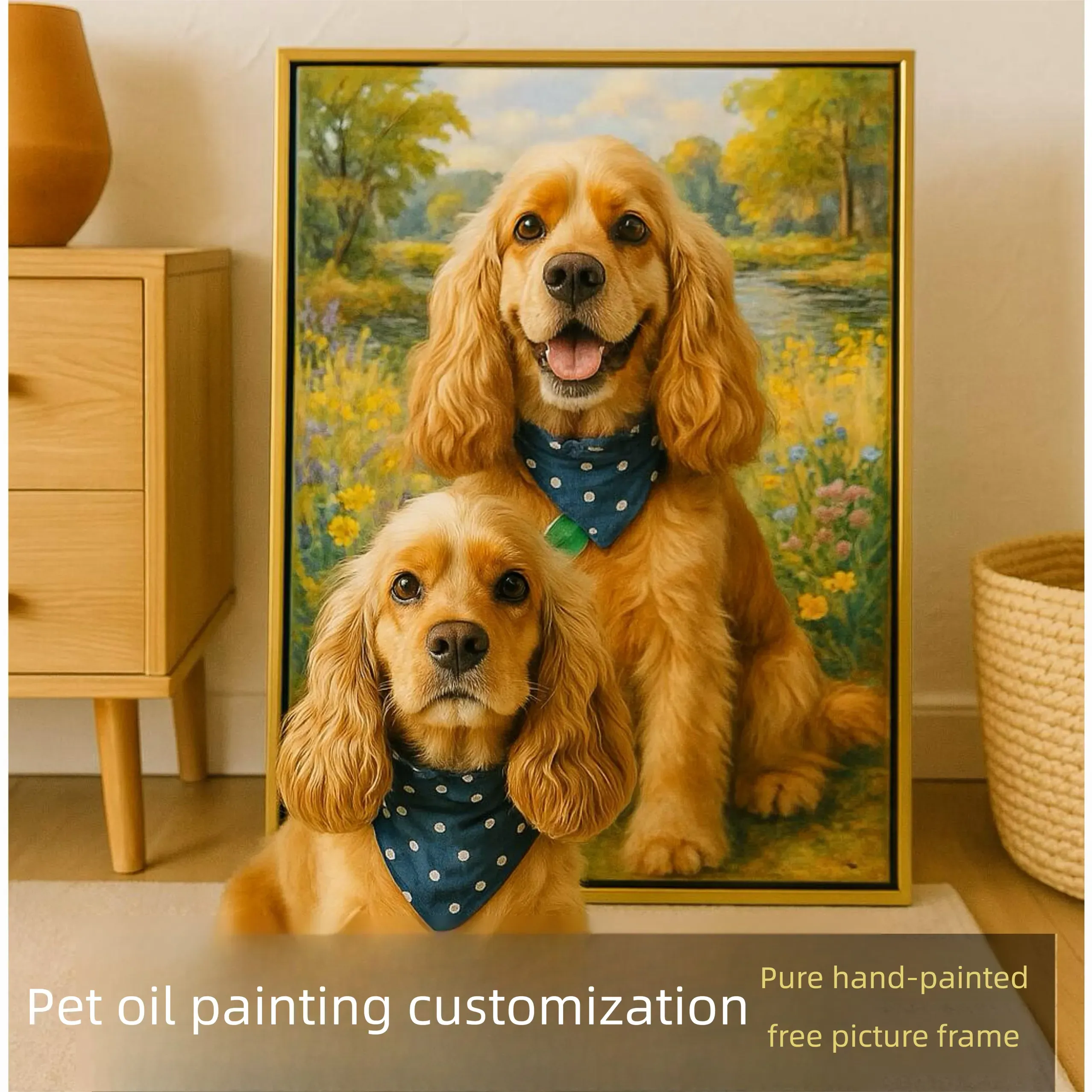 100% Hand-Painted Custom Pet Portrait – Personalized Dog & Cat Oil Painting from Photo
